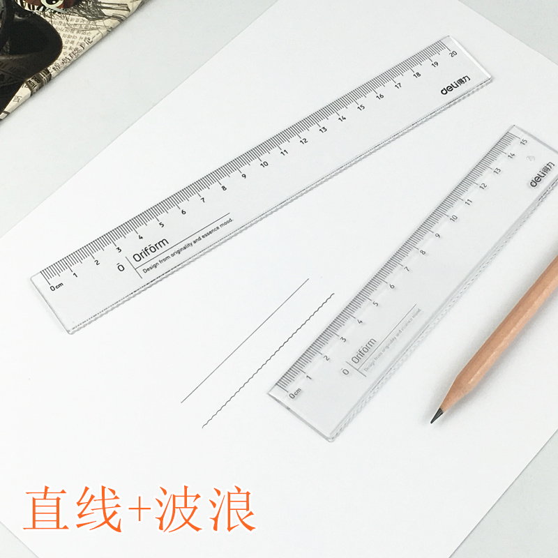 Deli ruler 10 set elementary school student ruler wave ruler 15cm transparent ruler 20 cm ruler with waves