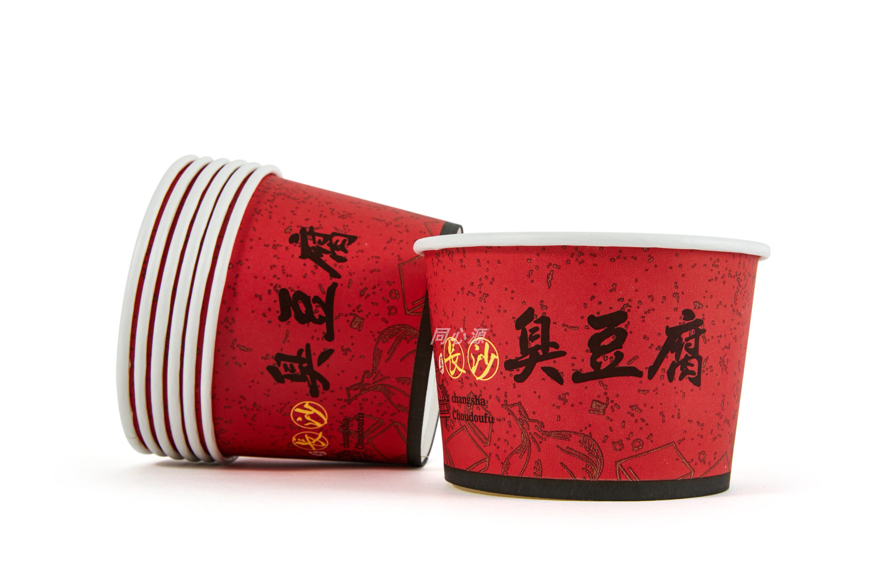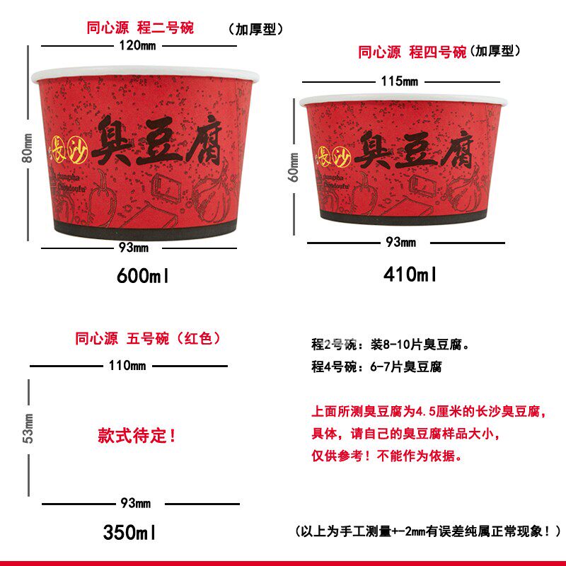 Cocentric source No. 4 bowl disposable paper bowl red long sand tofu bowl round packed paper bowl 410ml