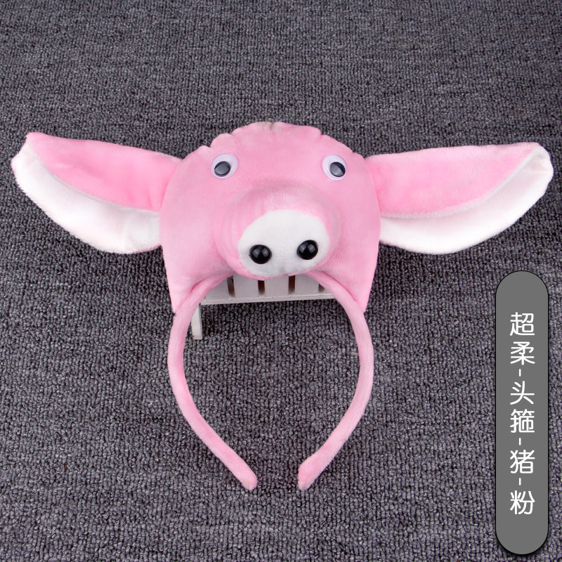Children Performing Animal Head Stirrup Early Childhood Destination Performance Hat Plush Frog Calf Small Pig Puppy Head Decorated With Three Sets