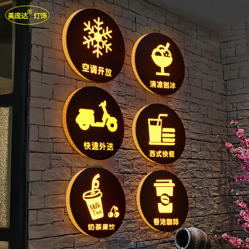 Custom Casual Coffee Hall Door Head Sign Shine Light Box Character Milk Tea Shop Cold Air Open Round LED Billboard