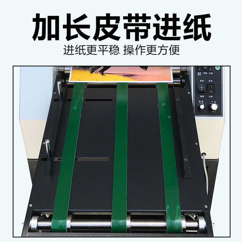 350B laminating machine Automatic laminating machine Conveyor belt paper feeding steel roller anti-curling laminating machine Cold laminating Hot laminating high-speed single and double-sided laminating machine Pre-coated self-adhesive paper Big print good peritoneal machine