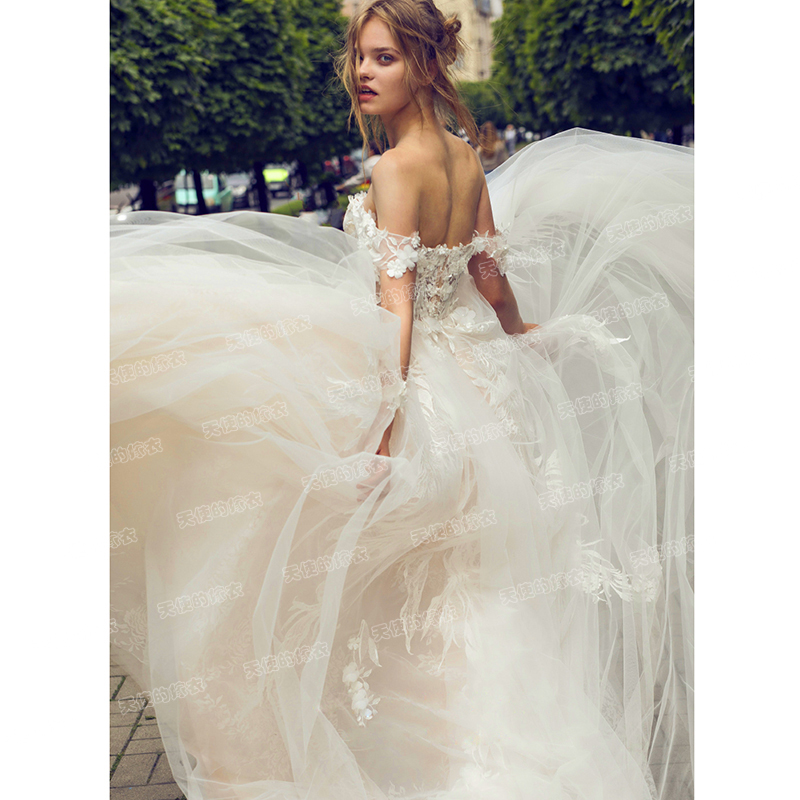 Angel wedding dress Mori super fairy one-shoulder bride travel shooting location seascape trailing wedding dress w1820