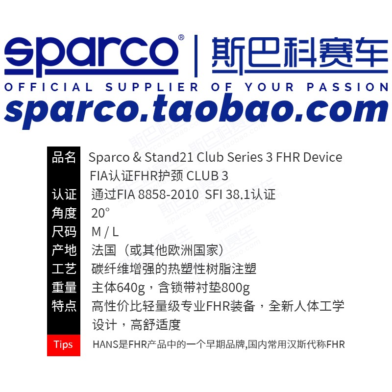 Sbarco racing SPARCO racing FHR Hans CLUB3 caravan head neck limit HANS ultra-light FIA certification