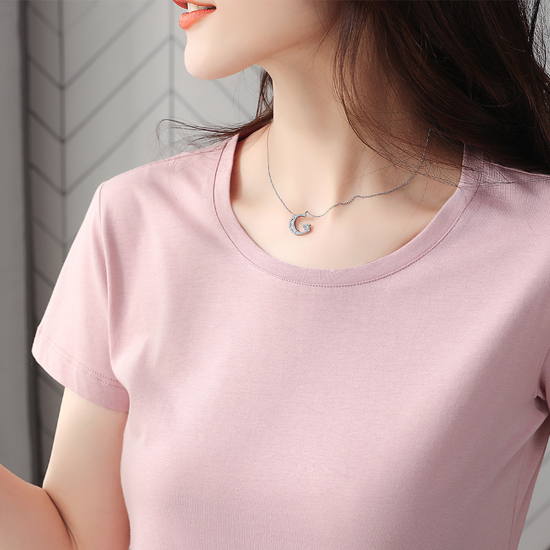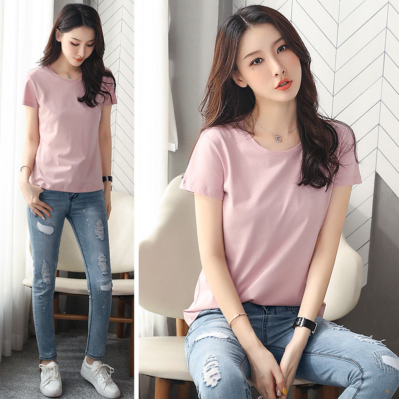 Pink t-shirt women's short-sleeved ins cotton T-shirt Korean version large size slim T-shirt wild short solid color round neck half sleeve