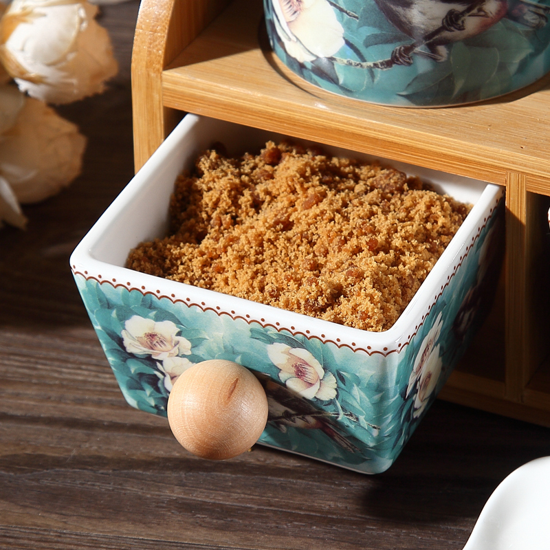 Kitchen Ceramic Seasoned Tank Suit Home Creative Salt MSG Sugar Jars Box Oil Pot Glass Oil Bottle Moisture