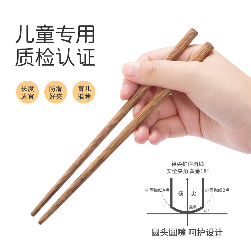 Children's chopsticks wooden household two-section 6-year-old solid wood special chicken wing wood wood 3-year-old baby eating short wooden chopsticks