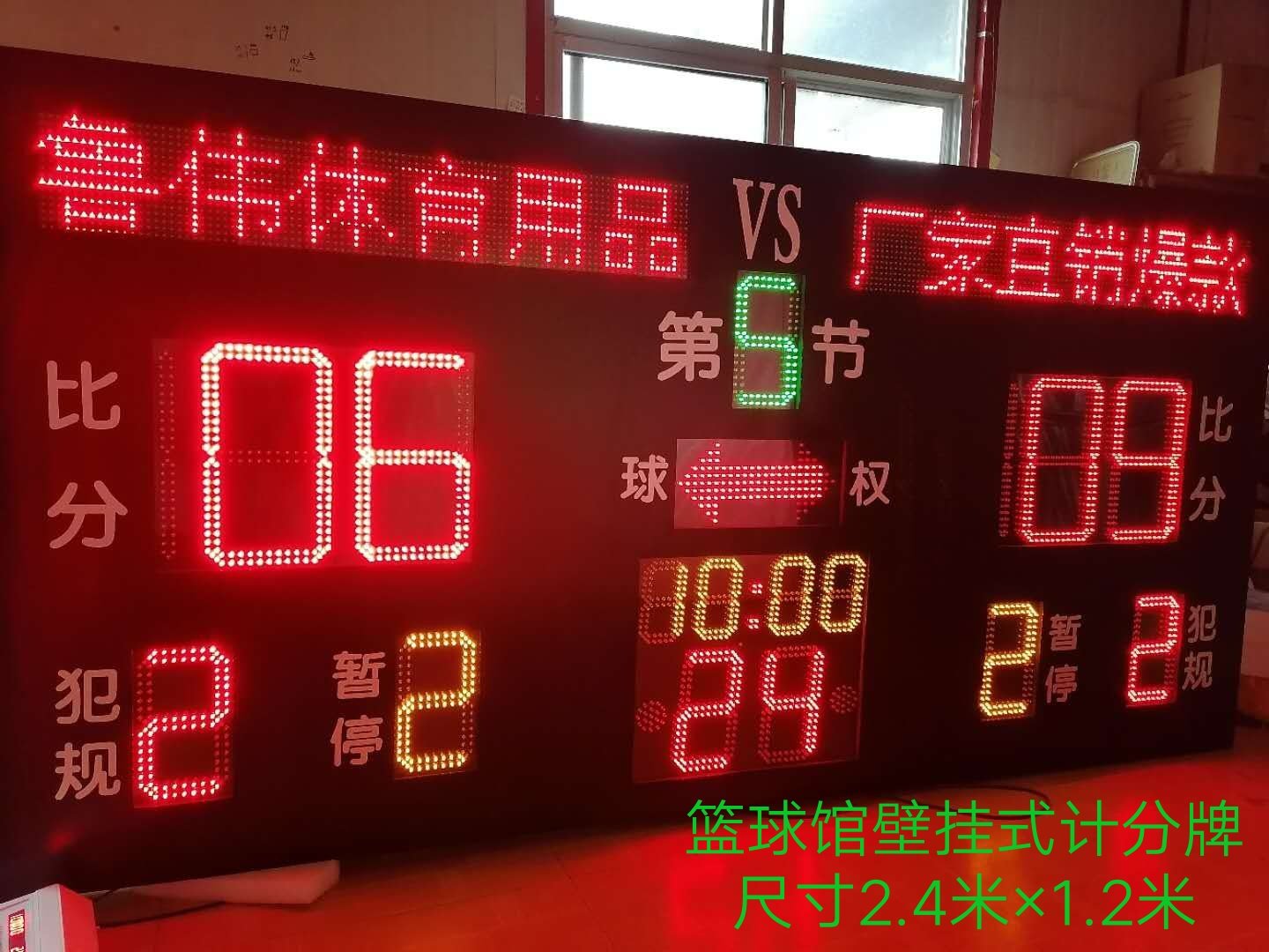 The wall-mounted scoreboard is 2.4 meters long and 1.2 meters high