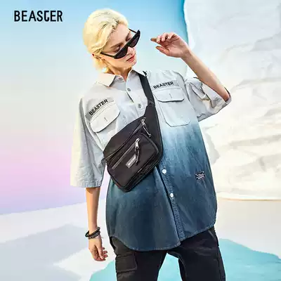 BEASTER couple national trend gradient color denim shirt jacket men's short-sleeved very fairy shirt Western style top