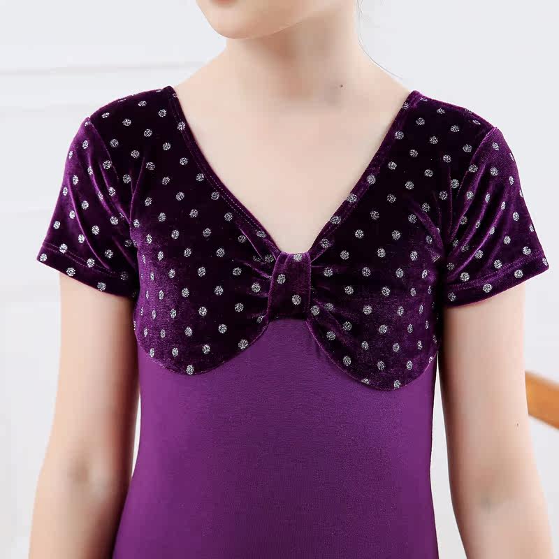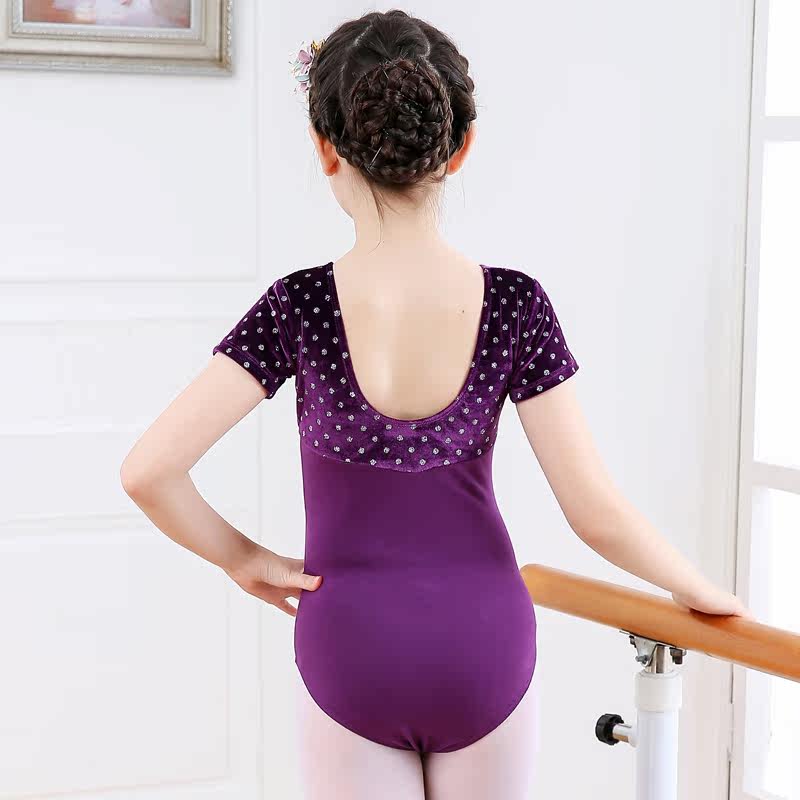 New children dance clothes girl short sleeve bright sheet gold velvet practice Young Children Ballet Danced to Gymnastics Suit