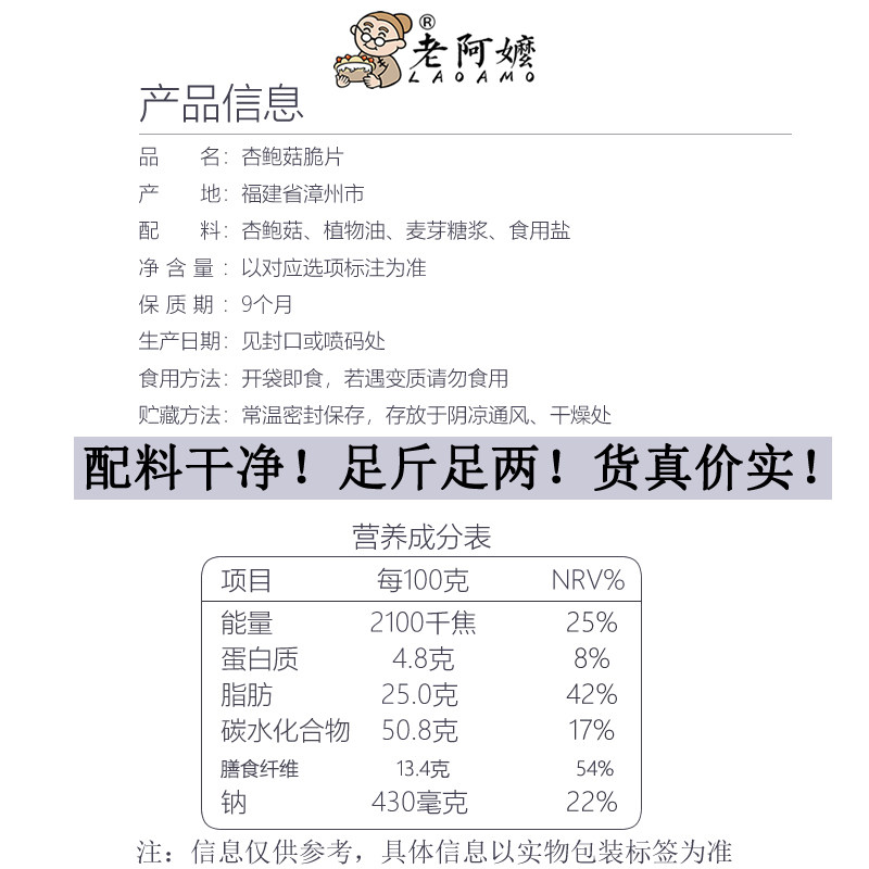 Old grandma Pleurotus eryngii crisps snacks ready-to-eat office snacks leisure food bulk snacks mushrooms fruit and vegetable crisps