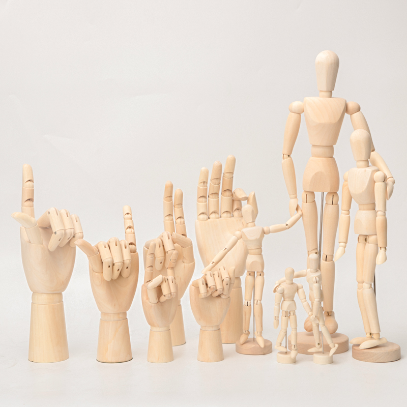 4 5-inch joint puppets 5 5-inch joint puppets 8-inch joint puppets 12-inch joint puppets 16-inch joint puppets 7-inch children's left hand 7-inch children's right hand 10-inch woman's left hand