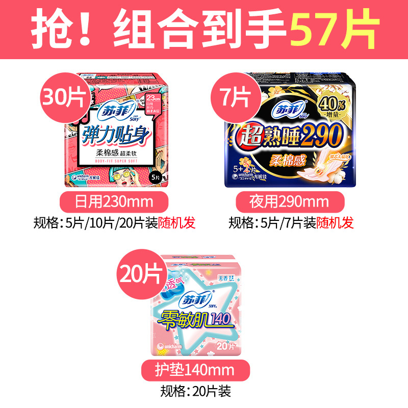 Sufi sanitary cotton soft cotton feeling day and night full set of 57 slices of clothing whole box Aunt Towel Batch Special Price Flagship Store Officer Net