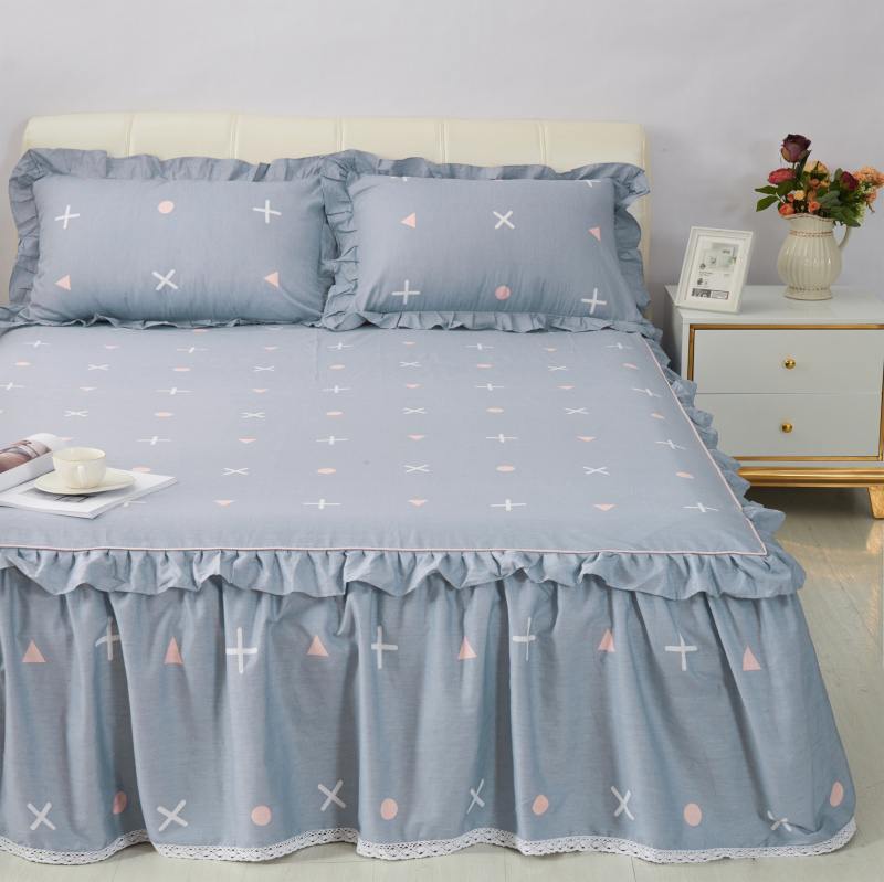 Korean version 100%cotton bed skirt four-piece set Cotton simple bed cover bed cover 1 8m2 0m bedding winter