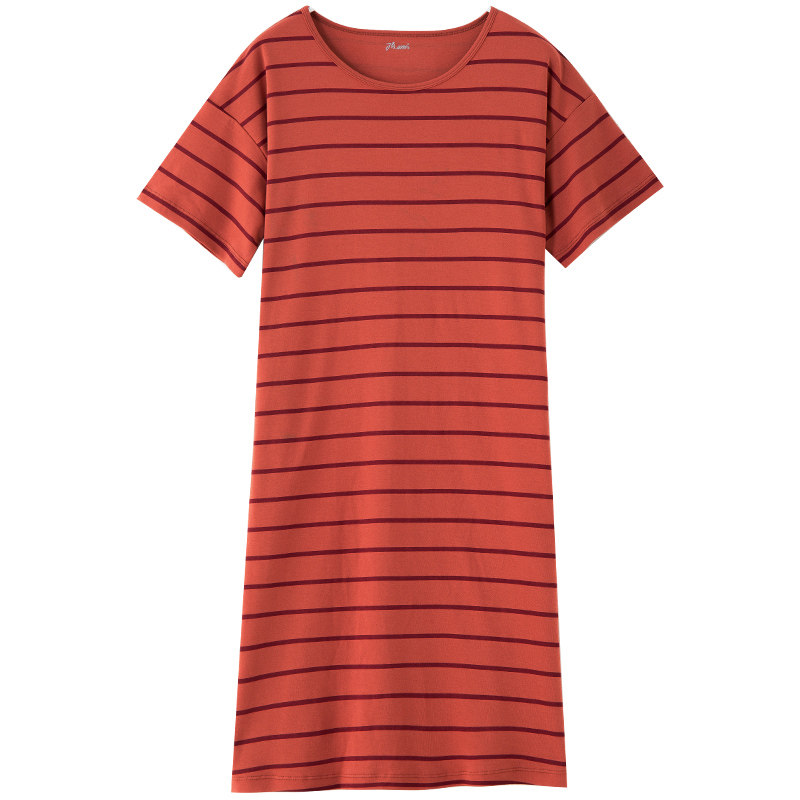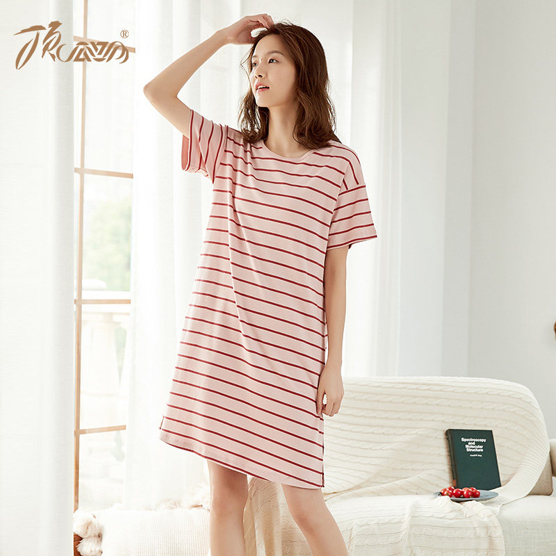 Toppipe nightdress women's summer pure cotton long version loose large size Korean version striped thin section cotton homewear ladies pajamas