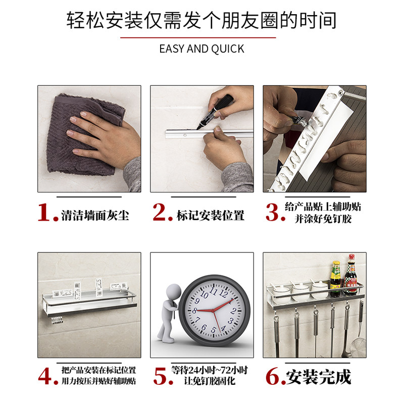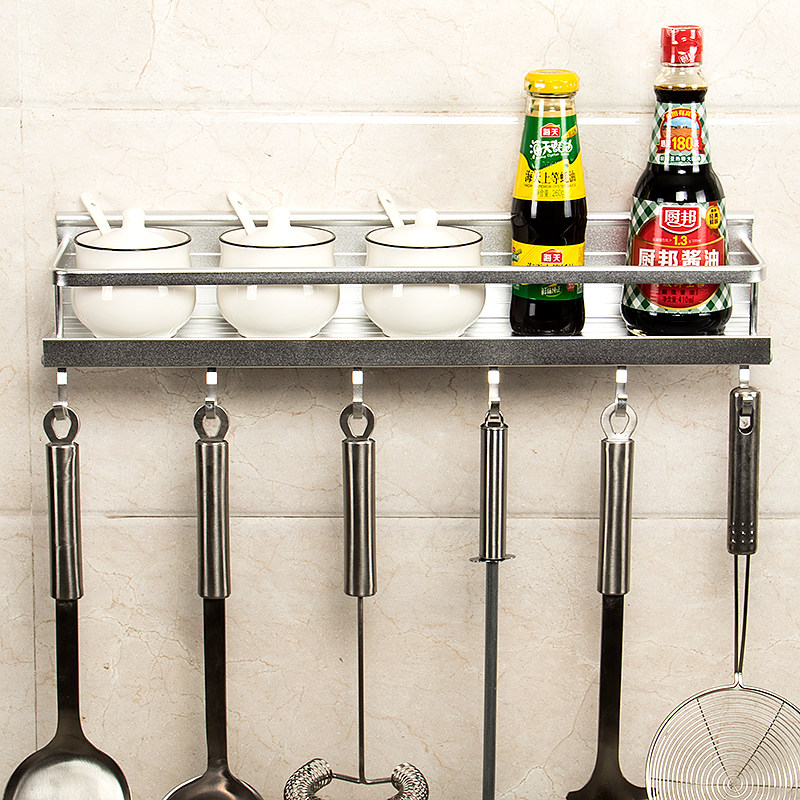 Aluminium Alloy Kitchen Shelve Free-punched wall-mounted Thickened Condiment Ingredients Home Belt Hook Minimalist single-layer-Taobao