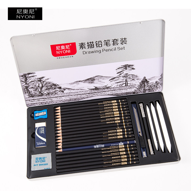 Nioni sketch pencil set Iron box Beginner full set of students with hand-drawn tools Art professional soft sketch pen