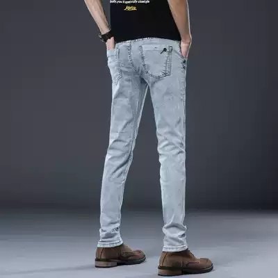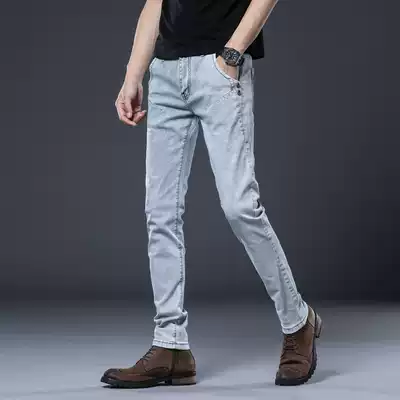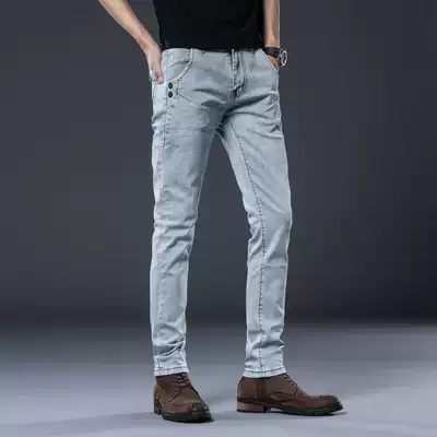2020 Spring and Autumn New Men slim jeans Korean trend stretch jeans simple gray casual pants
