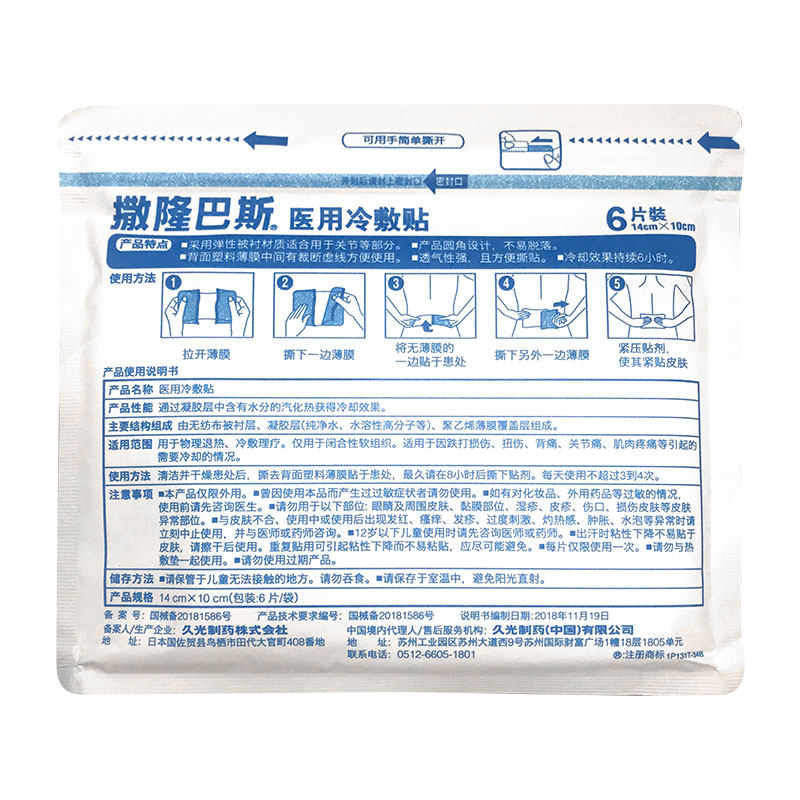 Long Light Pharmaceutical Saronbas Japan Import Cold Compress Patch 6 Sheet Clothing Relieves Sprain Pain Waist Pain Ice Cold Sticker