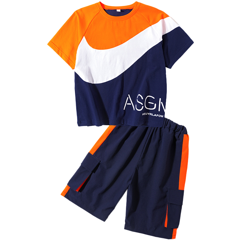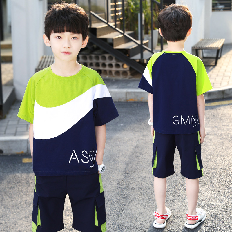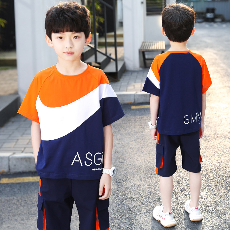 Boy Clothing Boy Summer Clothing Suit 2022 New Children Foreign Pie Trendy Sports Summer CUHK Boy Boy Handsome