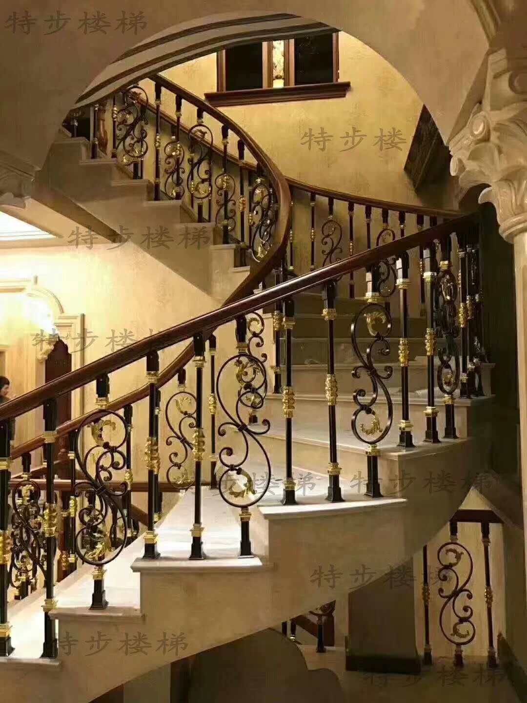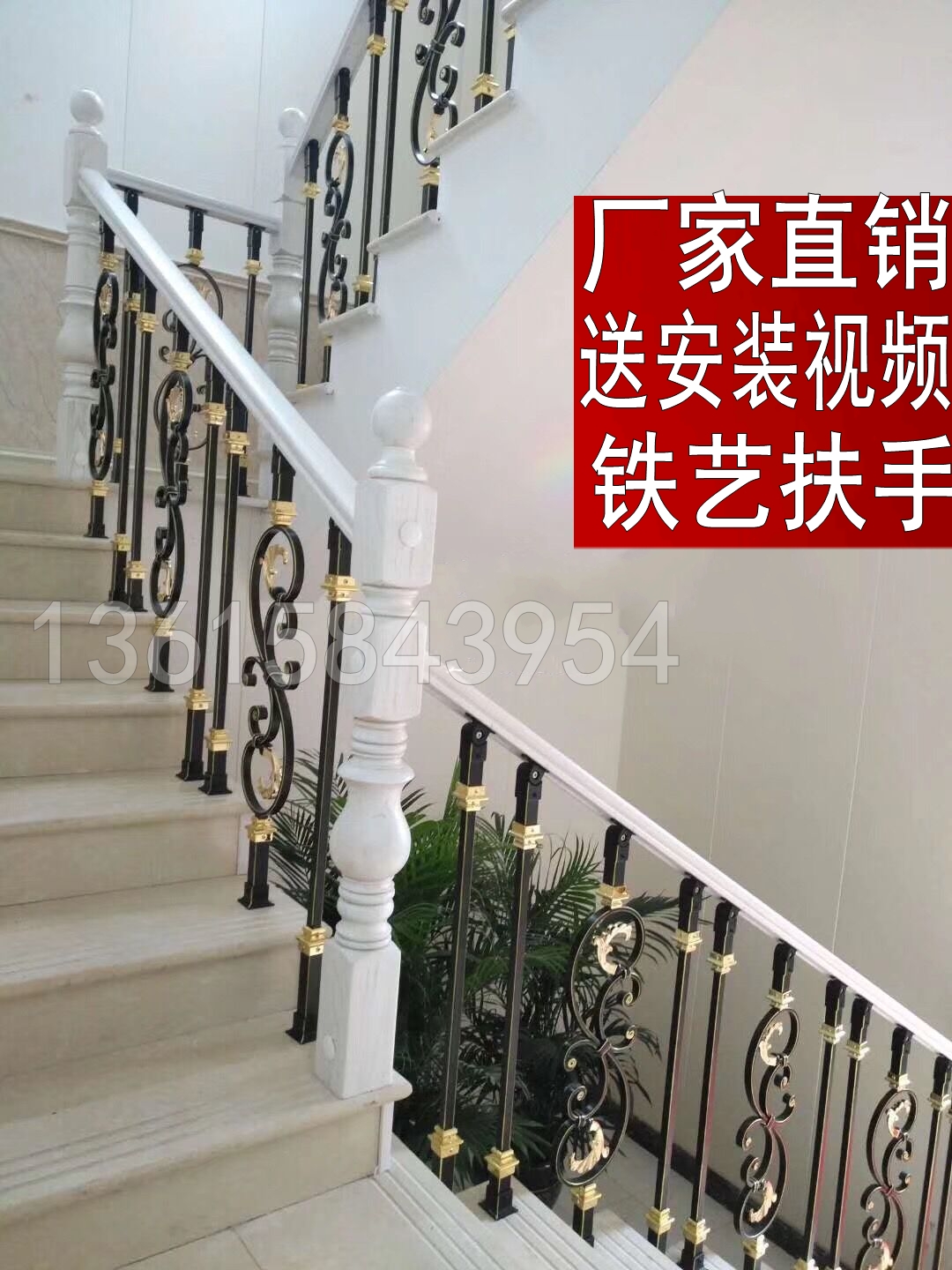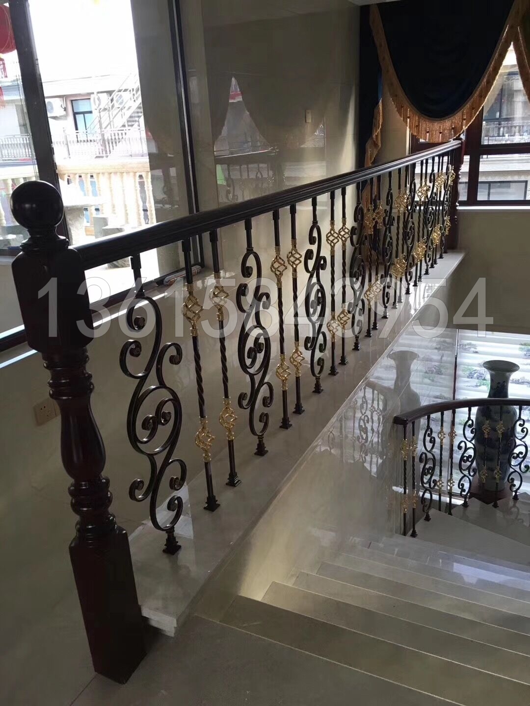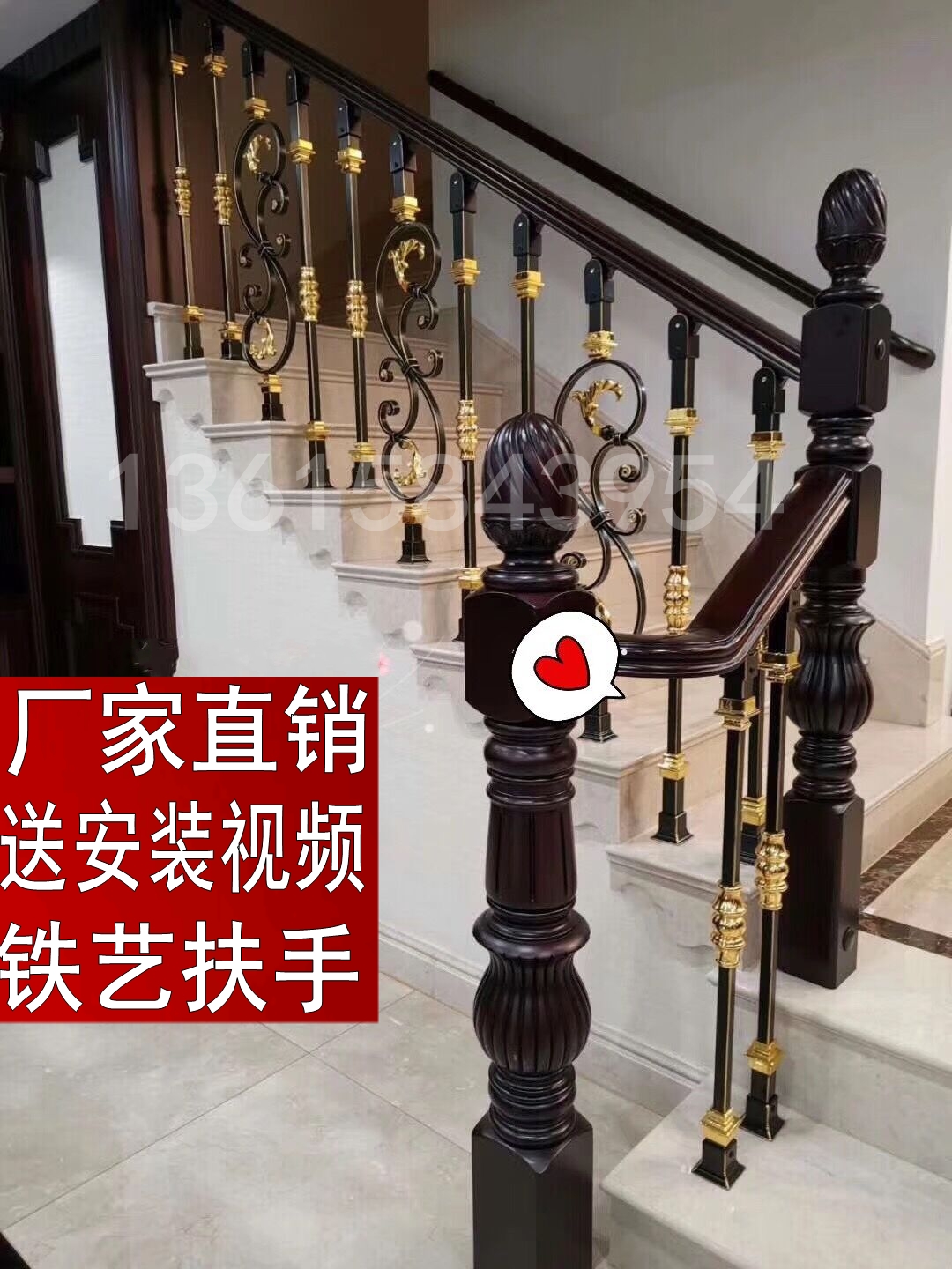 Iron stair handrail guardrail modern simple solid wood handrail loft Chinese duplex rotary indoor stair handrail