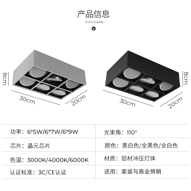 White-6*5W-White light 6000K White-6*5W-Warm light 3000K White-6*5W-Neutral light 4000K White-6*7W-Three-color dimming white-