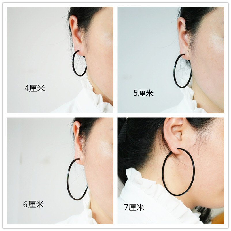 Square coil 4 cm black ear pin one counterpart coil 5 cm black ear pin one counterpart coil 6 cm black ear pin one each other coil 7 cm black ear pin one each other coil 4 cm black ear clip pair
