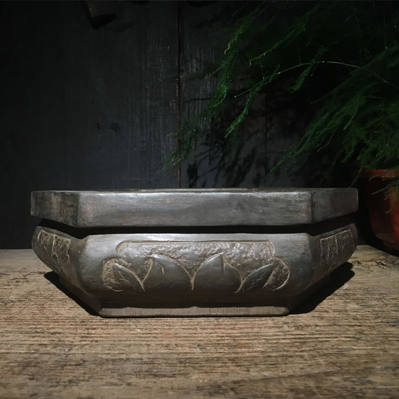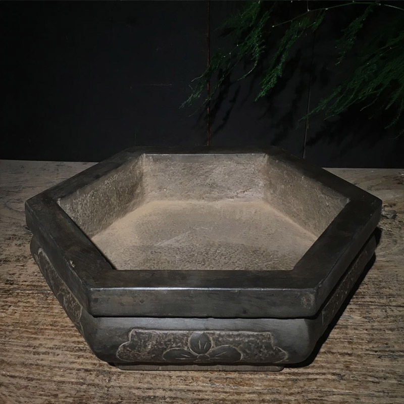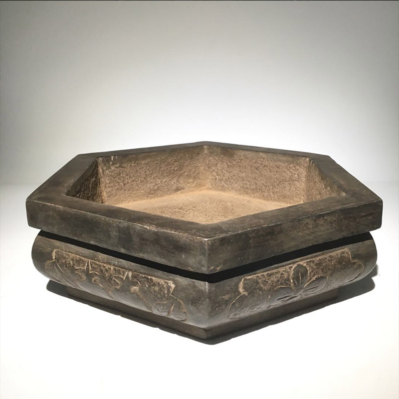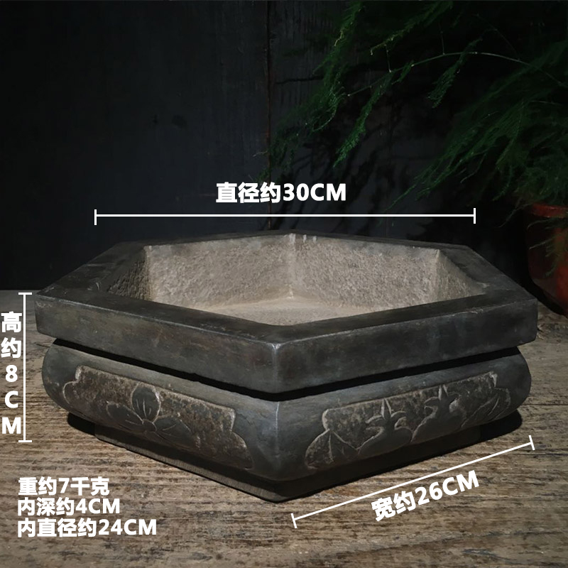Antique old stone carving Paleolithic antique Shanxi bluestone Duozi Duofu hexagonal flower pot antique furnishings play