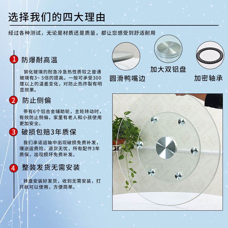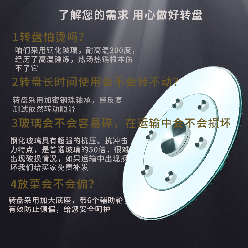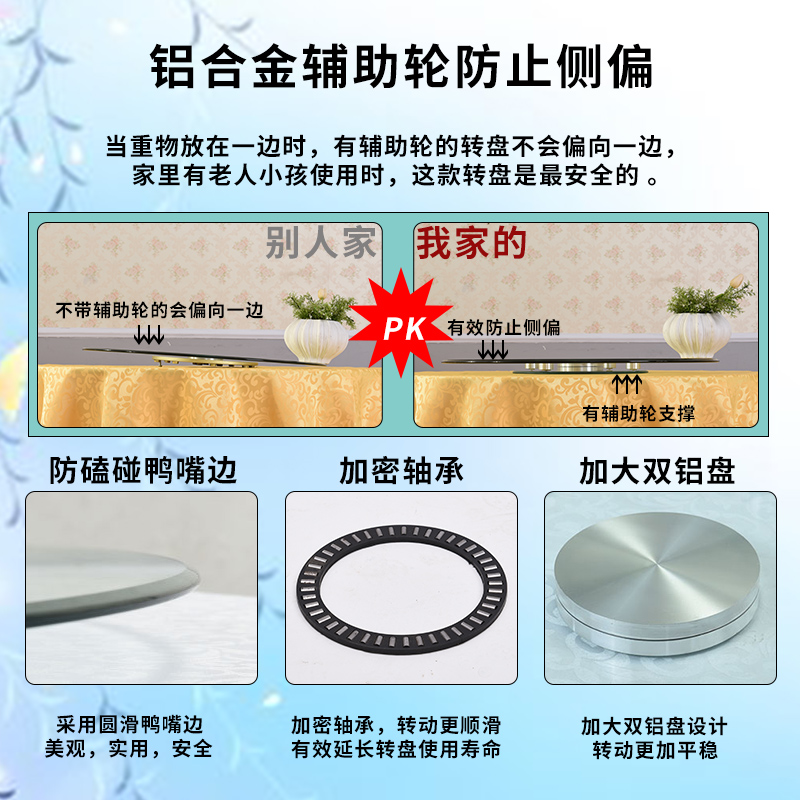 Turntable dining table Tempered glass Home dining table Manual rotary turntable base Round large round table auxiliary wheel