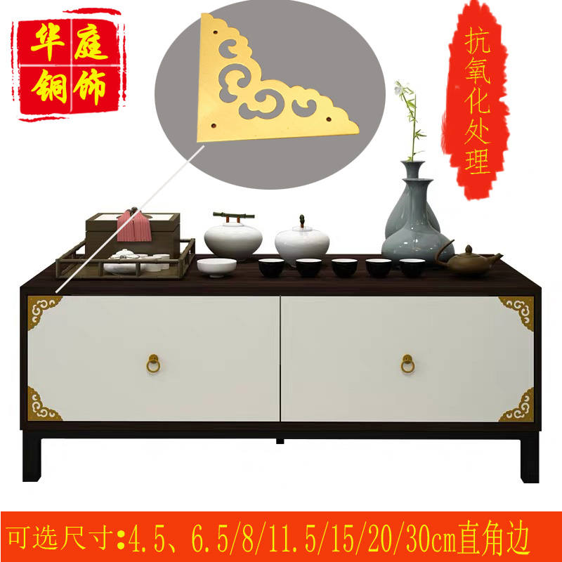 Chinese imitation antique pure copper cabinet corner corner flower wood case hand-decorated case integral cabinet wardrobe door hollowed-out retro hardware corner code