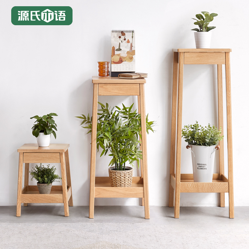 Genji wood language Solid wood multi-layer flower rack Modern simple indoor living room shelf Nordic Oak balcony flower pot rack