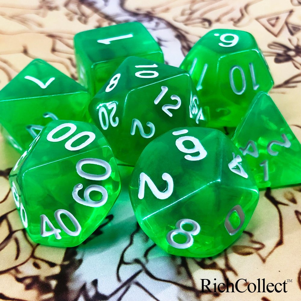 Dungeons and Dragons DnD acrylic transparent green and white TRPG Cthulhu running group COC board game dice
