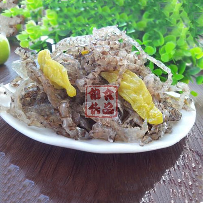 Pickled pepper fish skin open bag ready-to-eat whole box 150g * 50 packs commercial snacks cold mixed vegetables hotel KTV snack fish skin shredded