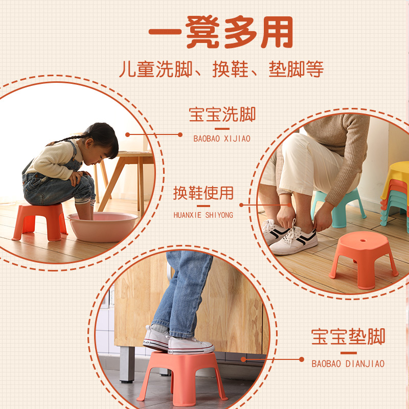 Tea Flower Plastic Children Small Stools Thickened Cartoon Anti-Slip Home Fashion Creative Storage Sofa Stool-Taobao