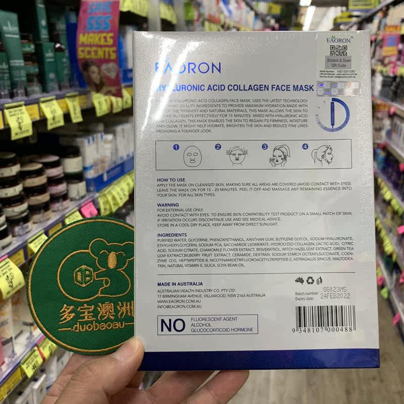 Duobaojia has Australia Eaoron water light needle white mask hyaluronic acid collagen deep moisturizing mask 5 pieces