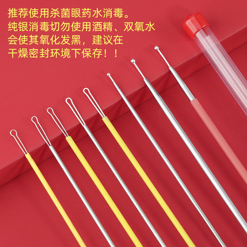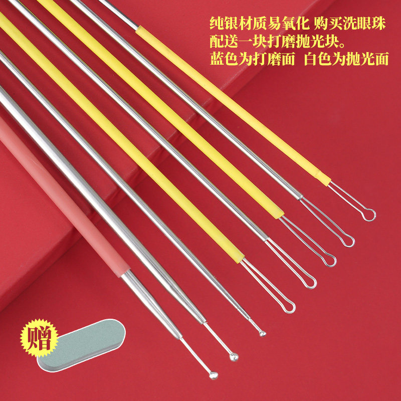 Eye wash needle reinforced sterling silver stainless steel round head eye wash beads scrape cleaning eye stick through lacrimal ear collection tool set