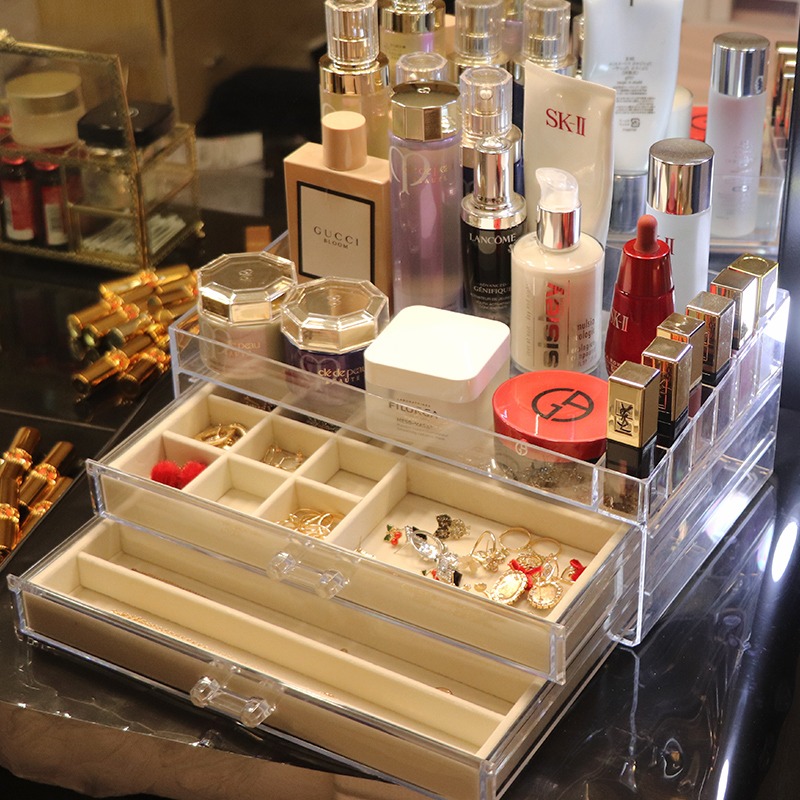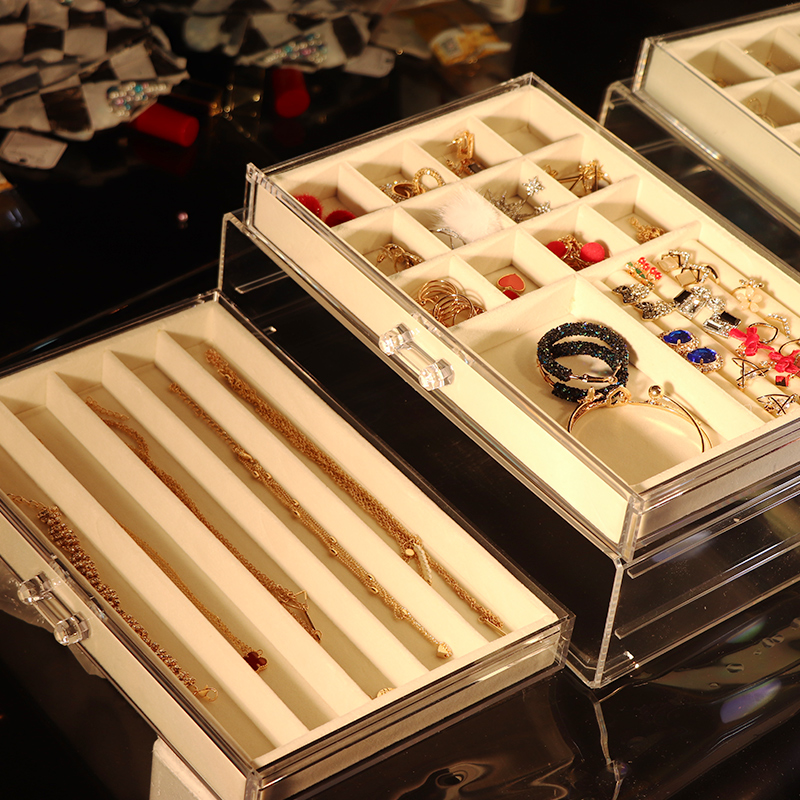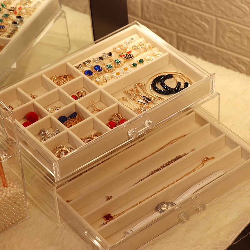 Jewelry Containing Box DRAWER Transparent Ornament Earrings Ring Minima Princess Eaux Dust Resistant Household Suede Plate