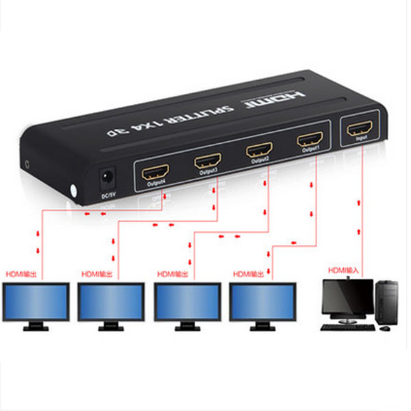 4k high-definition HDMI dispenser 1 minute 4 computer monitoring branch 1 in 4 out splicing screen extension cord 10%-4 screen