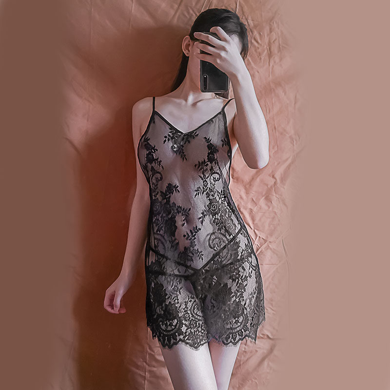 Lace perspective suspender skirt sexy lingerie passion perspective provocative beauty back skirt female sexy pajamas large size nightclub OL