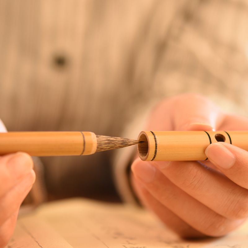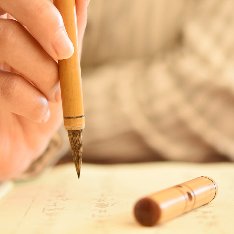 Moshezhai pure purple small calligraphy brush medium and small regular script two kings cursive script copying scripture pen ink paper inkstone study four treasures holy teaching order brush bamboo art with pen cap