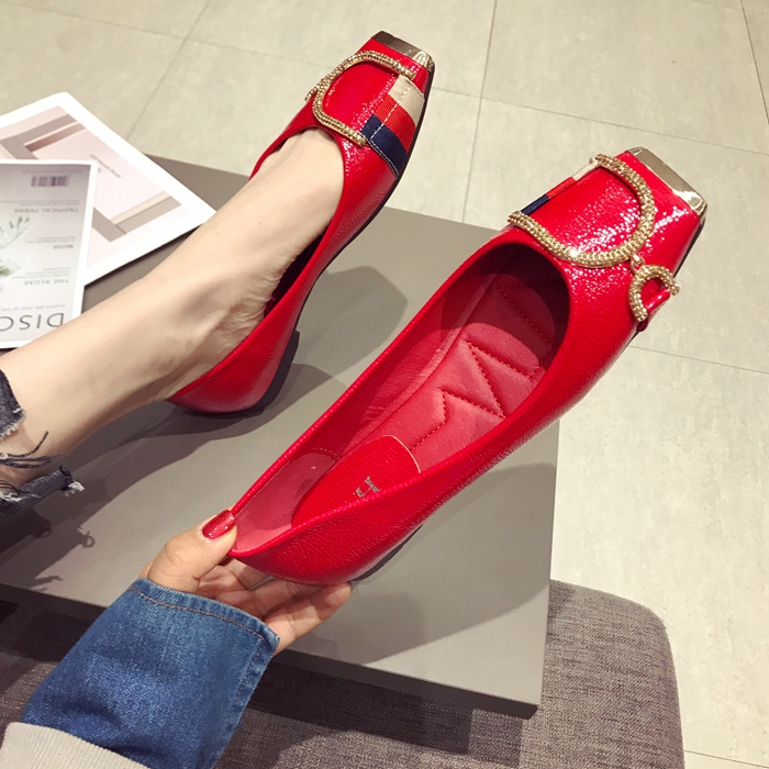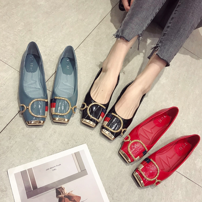 Tide brand 2022 spring new women's shoes leather shallow mouth retro casual square toe scoop shoes soft bottom flat heel flat shoes