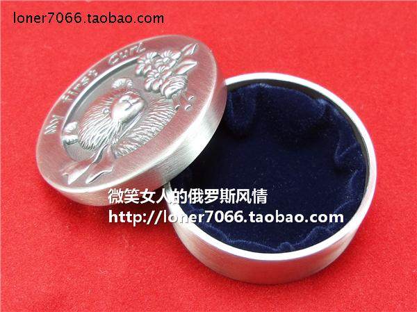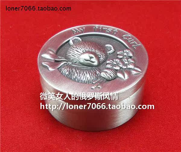 Special prices for Russian 12 - tin metal jewelry box circular bear tin - colored ear crack ring trim