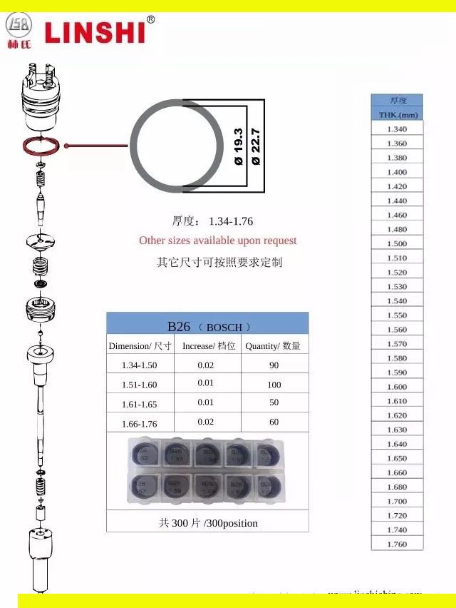 Lin's Bosch 120 series EFI common rail injector B26 armature lift stroke adjustment gasket 1 51-1 64