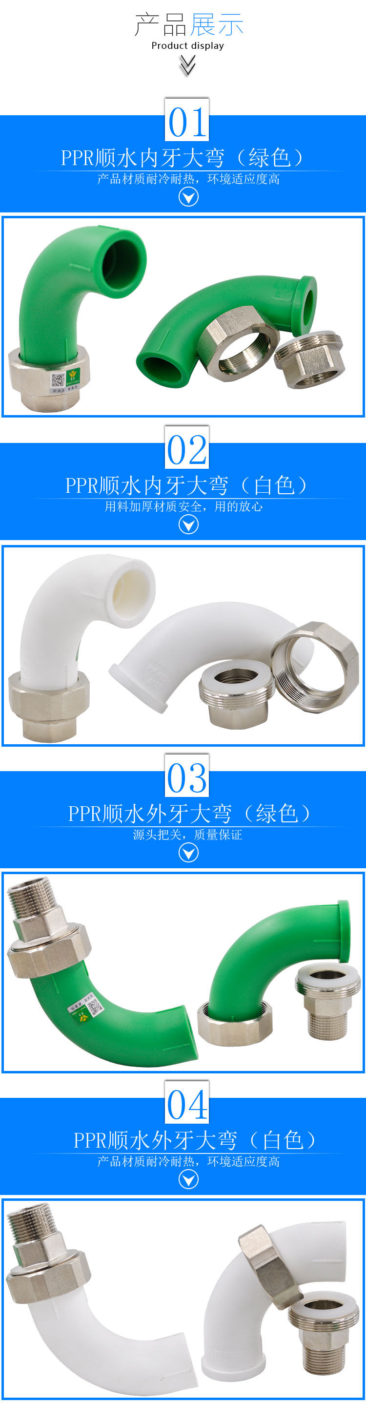 20 (4 points) large bend outer wire copper union (white) 25 (6 points) large bend outer wire copper union (white) 32 (1 inch) large bend outer wire copper union (white) 20 (4 points) Large curved inner wire copper work