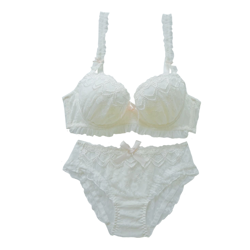 Early summer Japanese sweet girl White full lace thin cup side closed large size underwear set Japanese underwear underwear