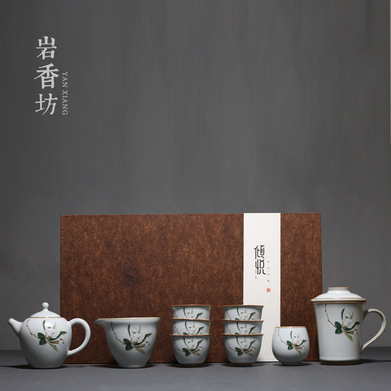 Rock Incense Workshop Moon White Ru Kiln Imitation Tomatoes Teapot Teapot Tea Tea Set Complete of Gongfu Tea Set Courtesy Kit-Taobao