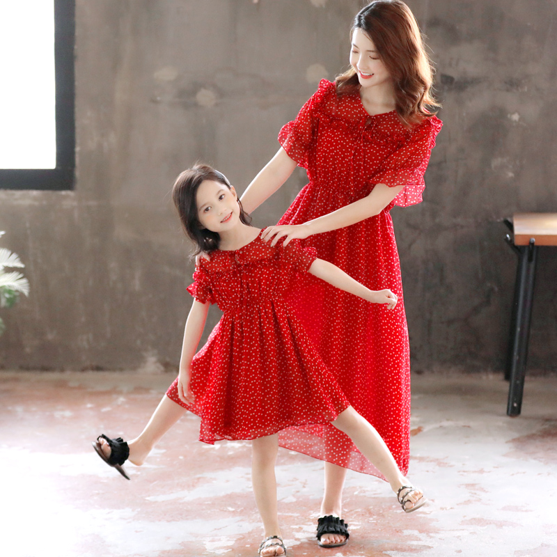 Mother woman foreign dress Chardress 2022 new pro Dress Foreign Pie Dress Short Sleeve Girl Clothing Nets Red Snow-spinning Princess Dress