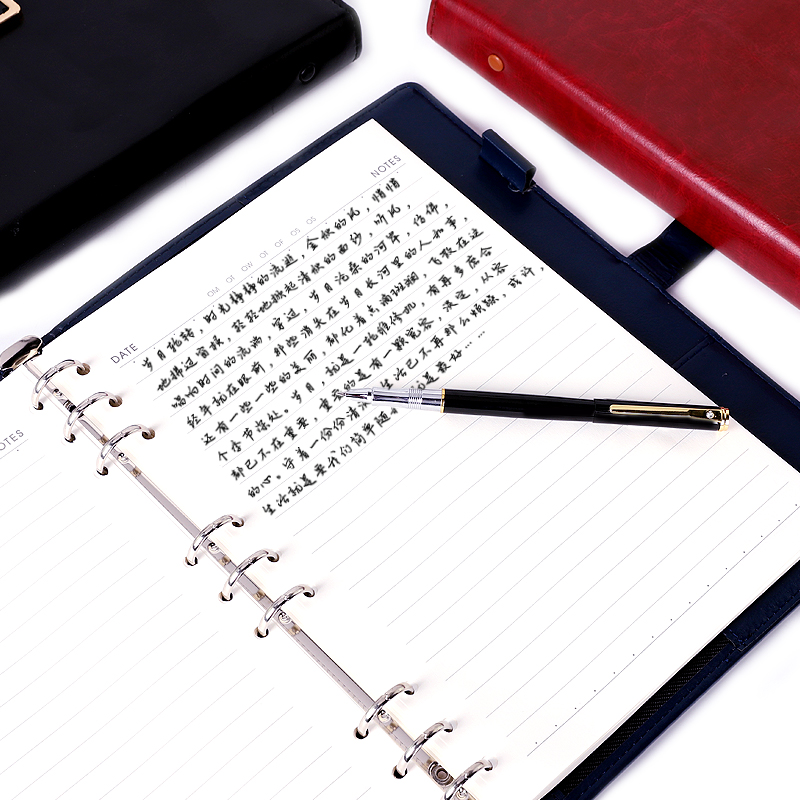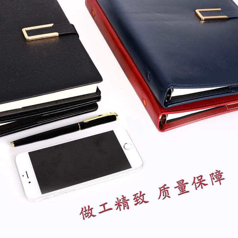 Business simple leather loose-leaf buckle notebook stationery 18 book gift box large meeting record book 25k diary notebook sub notepad work thickened notepad custom LOGO