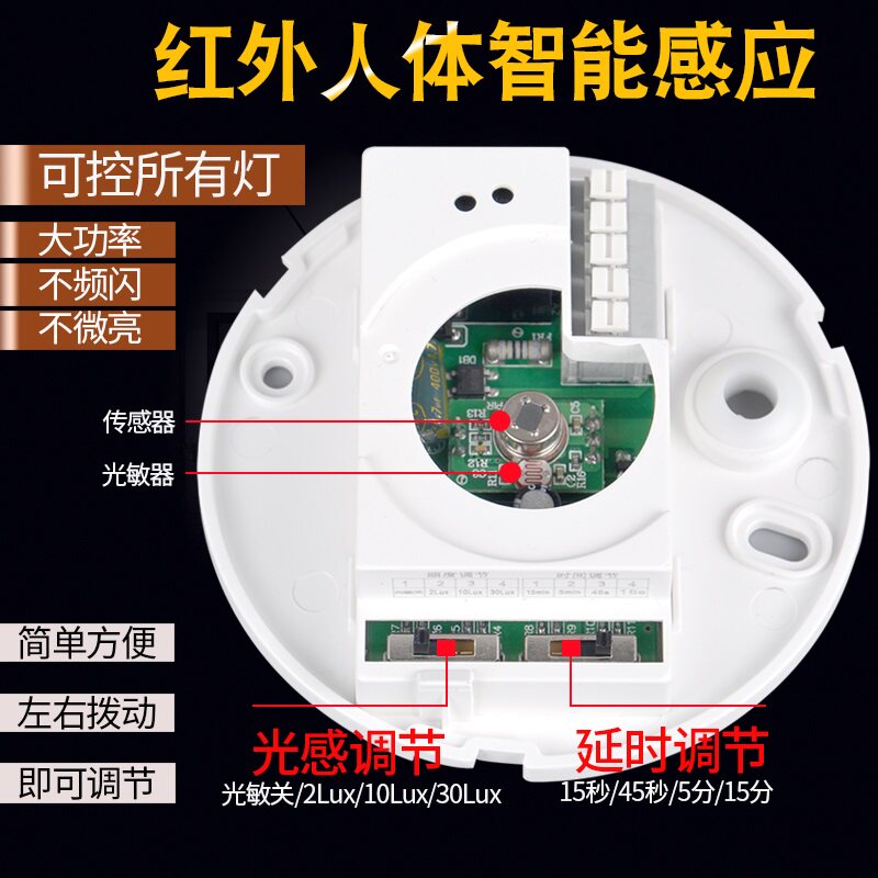 Round square ceiling type 86 panels 220V infrared human body sensor switch LED surface-mounted delay intelligent adjustable