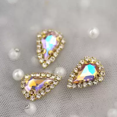 Sharp water drop AB color gold bottom hand seam claw drill super beautiful glass diamond accessories accessories clothes with drill