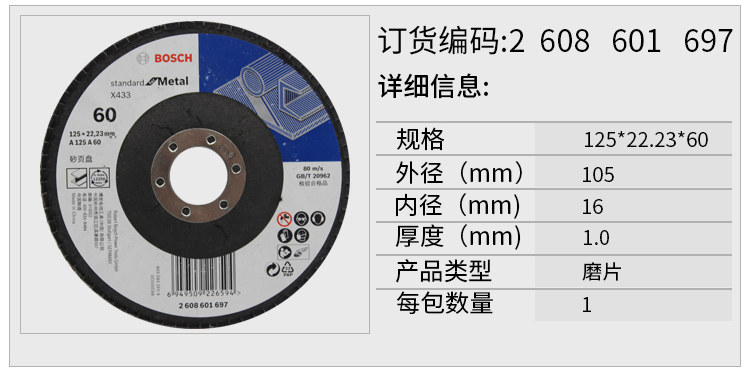 Bosch one thousand blade 125MM thickened angle grinding polished polished sheet metal wood sand cloth 100-page grinding wheel 60 mesh
